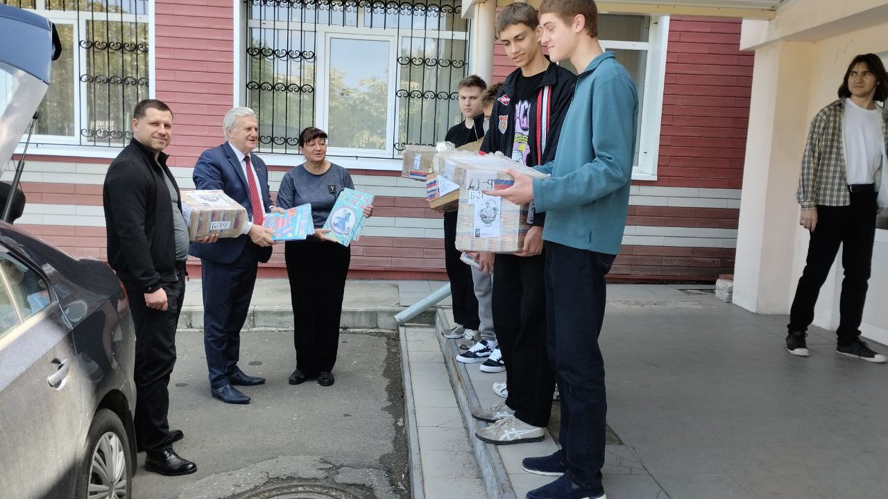 Коммунистов встретила директор гимназии Елена Александровна Стогний вместе с учениками старших классов. Делегация КПРФ привезла с собой лучший подарок для юных дончан – книги! Старшеклассники с энтузиазмом помогли разгрузить машину, предвкушая знакомство с новыми произведениями.