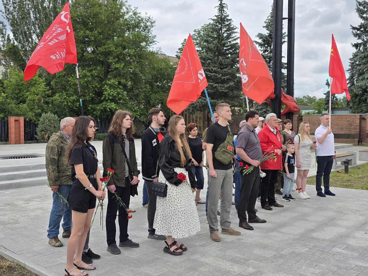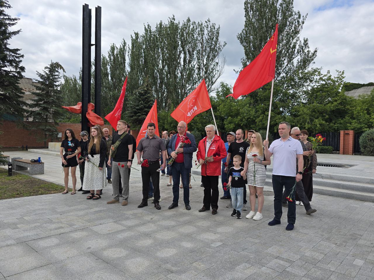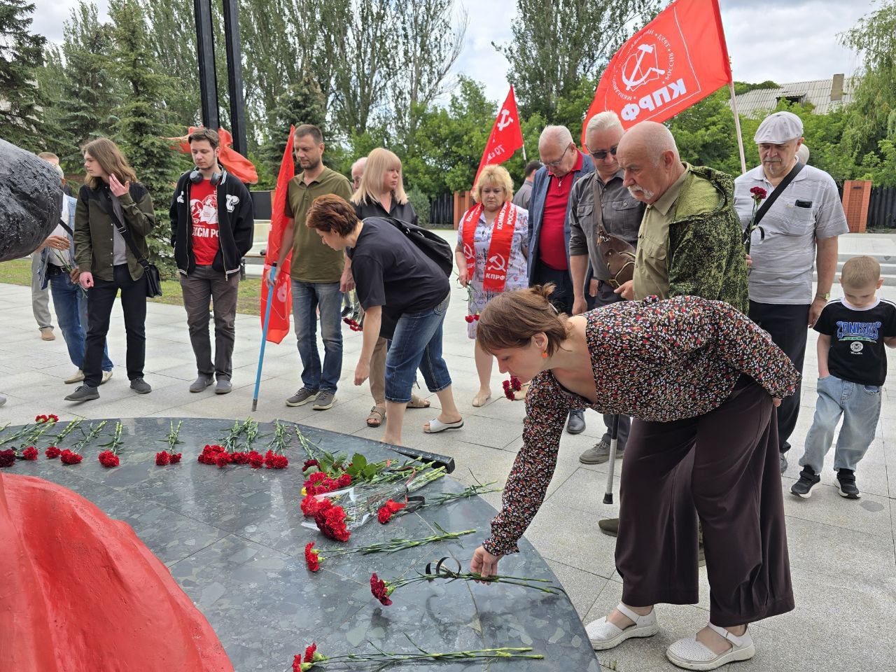 В День памяти и скорби, в 84-ю годовщину начала Великой Отечественной войны, коммунисты Донецкой Народной Республики во главе с Первым секретарем Донецкого рескома КПРФ, депутатом Народного Совета ДНР Борисом Литвиновым, отдали дань памяти жертвам фашизма, возложив цветы к Мемориальному комплексу Шурф шахты № 4/4-бис.