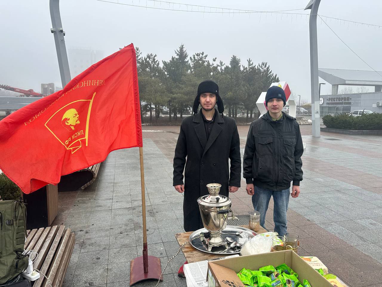 Мариуполь, февраль 2026 года. – В центре Мариуполя, несмотря на прохладную февральскую погоду, активисты городского отделения Ленинского коммунистического союза молодёжи Российской Федерации провели социальную акцию, направленную на поддержку жителей и популяризацию программных целей Коммунистической партии Российской Федерации.