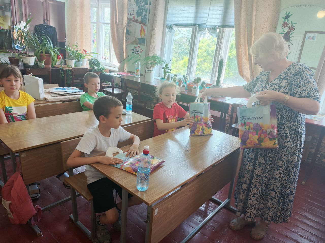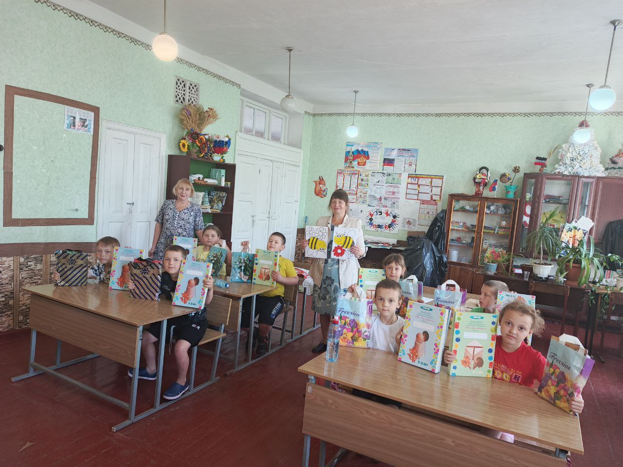 Ирина Гуц передала детям ценные подарки, собранные благодаря неравнодушным людям. Среди них – яркие аппликации, увлекательные детские книжки, альбомы для рисования, а также комплекты учебно-методического раздаточного материала, предоставленные волонтёрским движением “Вяжем для солдат” из города Сургута. Партийцы также позаботились о развитии творческих способностей детей, подарив им раскраски и цветную бумагу.
