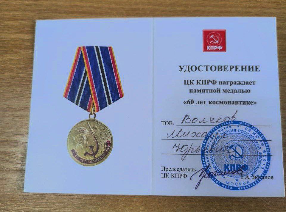 От имени Партии и по поручению Первого секретаря Комитета Донецкого рескома КПРФ, руководителя Фракции КПРФ в Народном Совете ДНР Бориса Алексеевича Литвинова, депутат Народного Совета ДНР, профессор Игорь Владимирович Костенок вручил памятную медаль «60 лет космонавтике» Михаилу Юрьевичу Волчкову. Это событие стало важным моментом, подчёркивающим значимость науки и образования в регионе.