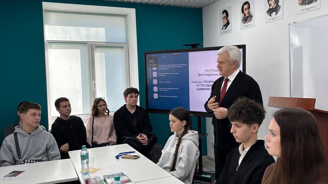 Депутат Народного Совета ДНР от фракции КПРФ, профессор Игорь Костенок посетил мероприятие для абитуриентов 2026 года набора в Донецком филиале РАНХиГС. День открытых дверей прошёл на кафедре теории управления и государственного администрирования.