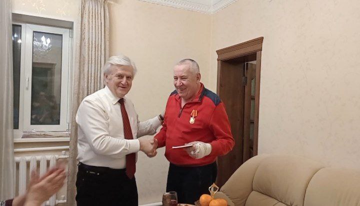От имени Партии депутат вручил юбиляру медаль «80 лет Великой Победы». Александр Иванович посвятил 30 лет жизни работе в шахте, олицетворяя собой трудовую доблесть Донбасса.