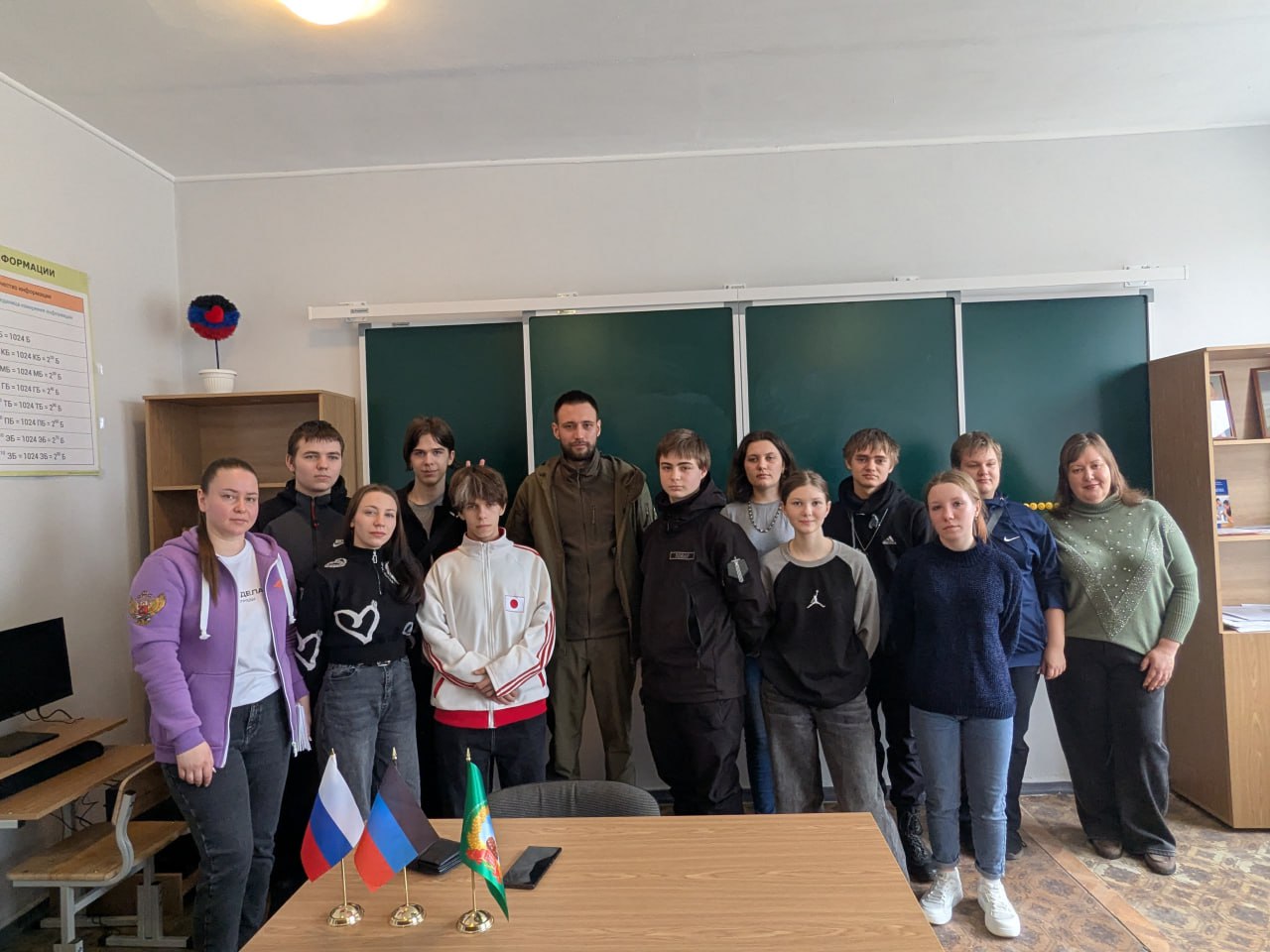Продолжая тему защиты Родины, комсомольцы Донецка провели урок мужества для студентов Донецкого техникума пищевой и перерабатывающей промышленности. Первый секретарь Комитета Донецкого республиканского отделения ЛКСМ РФ Сергей Захарченко и секретарь первичного отделения Пролетарского района Анна Петрова напомнили молодёжи о героическом прошлом Рабоче-крестьянской Красной Армии, рождённой из народа и рабочего класса. Личные воспоминания и рассказы о буднях защитников Отечества вызвали у студентов живой интерес, чувство гордости и уважения, а также побудили их к написанию писем военнослужащим на передовой.
