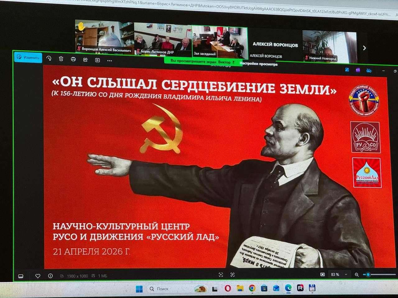 В преддверии дня рождения Владимира Ильича Ленина, выдающегося политического деятеля и основателя советского государства, состоялось значимое событие – совместное заседание Научно-культурного центра РУСО-«Русский Лад» в режиме видеоконференции. Мероприятие, получившее название «Он слышал сердцебиение земли», собрало представителей Донецкого Республиканского Комитета КПРФ во главе с Первым секретарём и руководителем фракции КПРФ в Народном Совете ДНР Борисом Литвиновым.