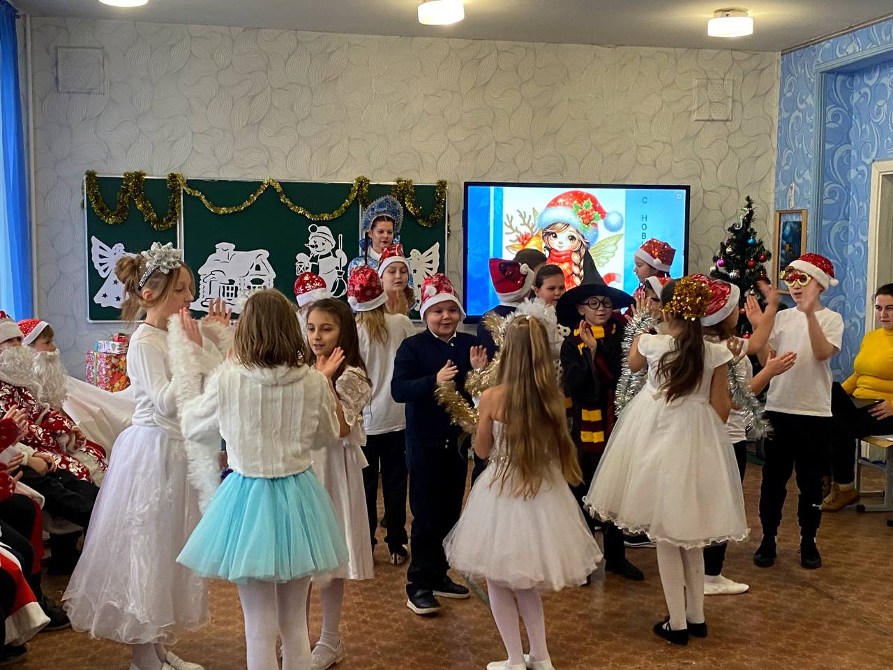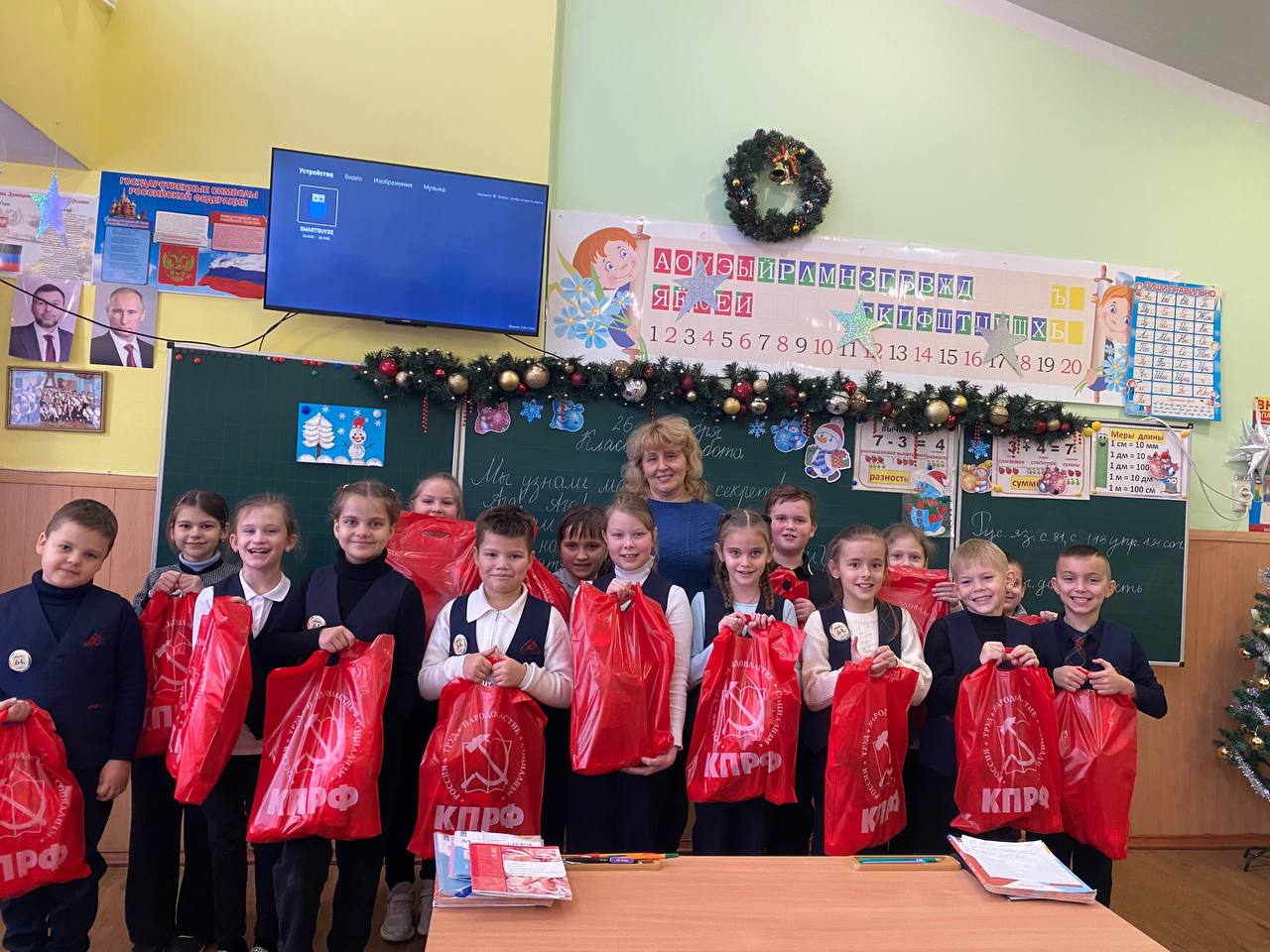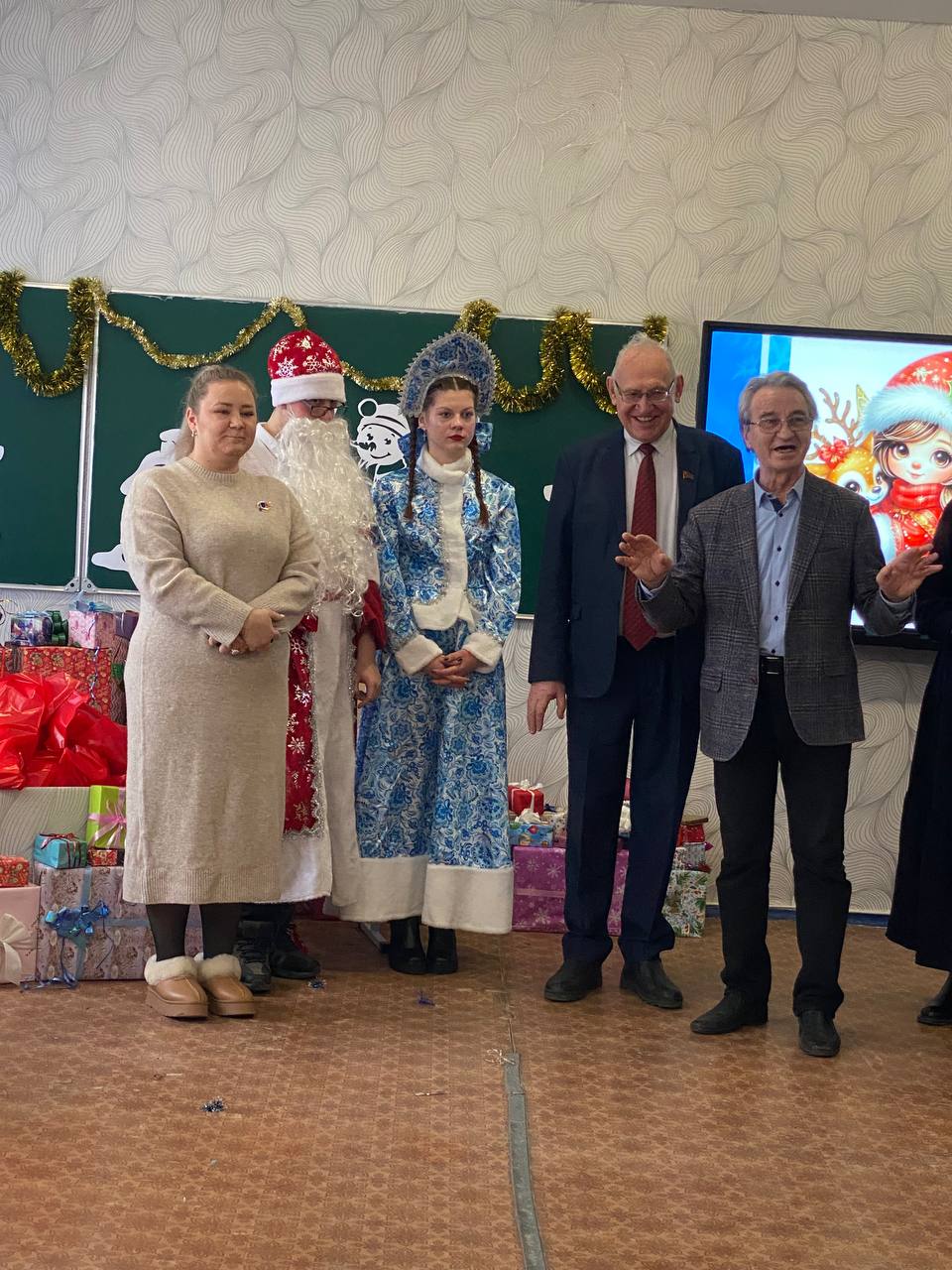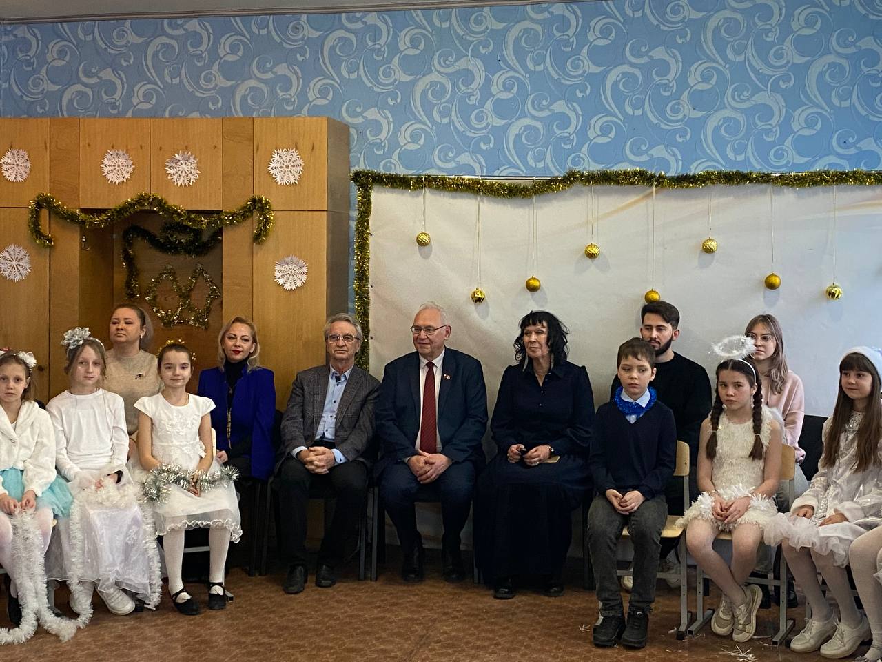 В преддверии Нового года в школе №64 города Донецка царила по-настоящему волшебная атмосфера. Любимый детский праздник стал особенно значимым благодаря визиту представителей Коммунистической партии Российской Федерации. Мероприятие посетила делегация КПРФ ДНР во главе с Первым секретарём Донецкого рескома КПРФ, руководителем фракции КПРФ в Народном Совете ДНР Борисом Алексеевичем Литвиновым, а также высокие гости из Москвы: советник Председателя ЦК КПРФ Владимир Романович Родин и член ЦК КПРФ, член Бюро МГК КПРФ Юлия Борисовна Михайлова.