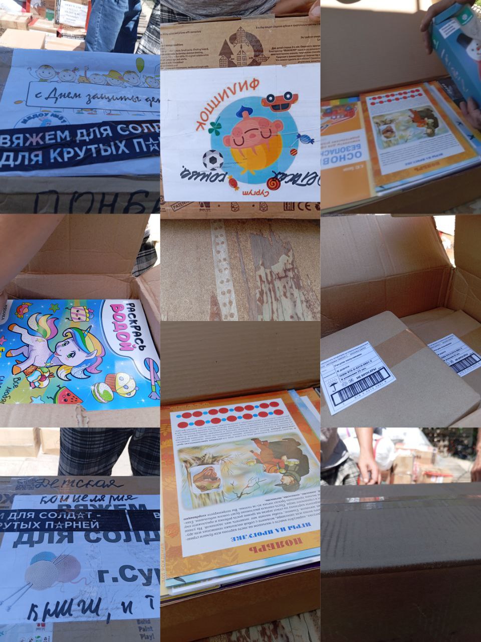 13 июля состоялась очередная раздача продуктовых наборов нуждающимся жителям района. В этот раз особое внимание было уделено детям – помимо продуктов, юные жители получили наборы для творчества: аппликации, раскраски и необходимые канцелярские принадлежности.