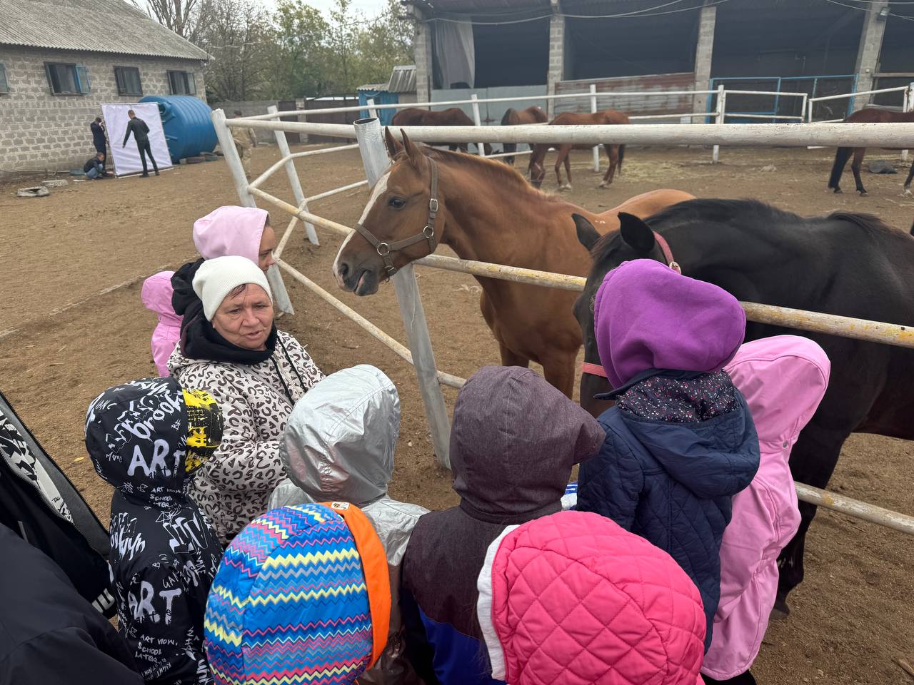 Вторым пунктом программы стало мероприятие, организованное Мариной Андрияновой для воспитанников детского дома семейного типа Ковалёвых и Донецкого детского дома №1 «Теремок». Оно проходило в конноспортивном клубе «Гран-При», где для детей была организована череда увлекательных мероприятий на свежем воздухе. Юные воспитанники смогли насладиться конной прогулкой и угощениями на сладком столе. Артисты Донецкой Народной Республики порадовали ребят своими выступлениями, а начинающие художники из Донецкого колледжа культуры и искусств провели выставку своих картин.