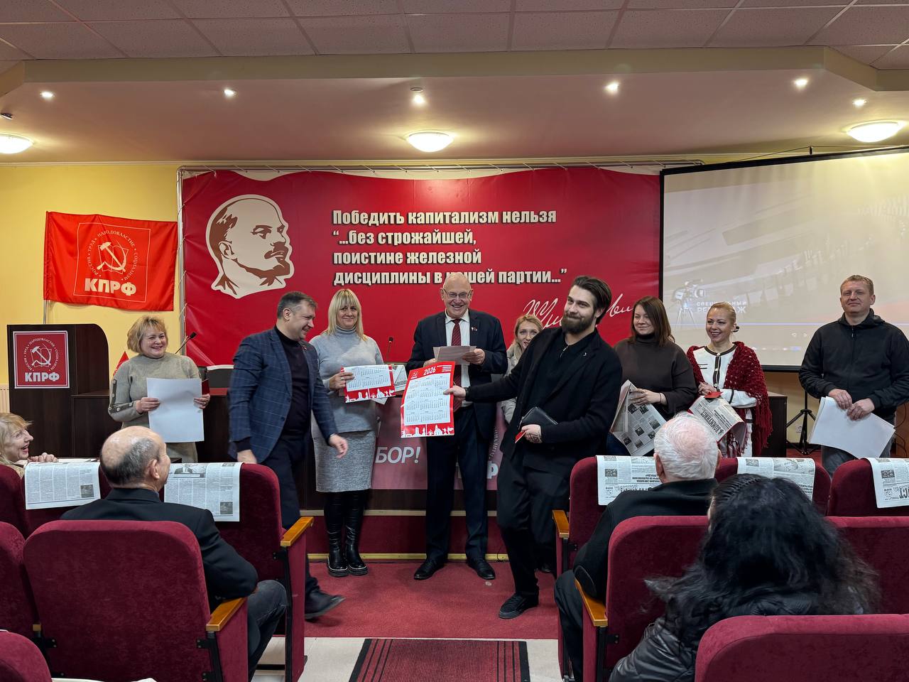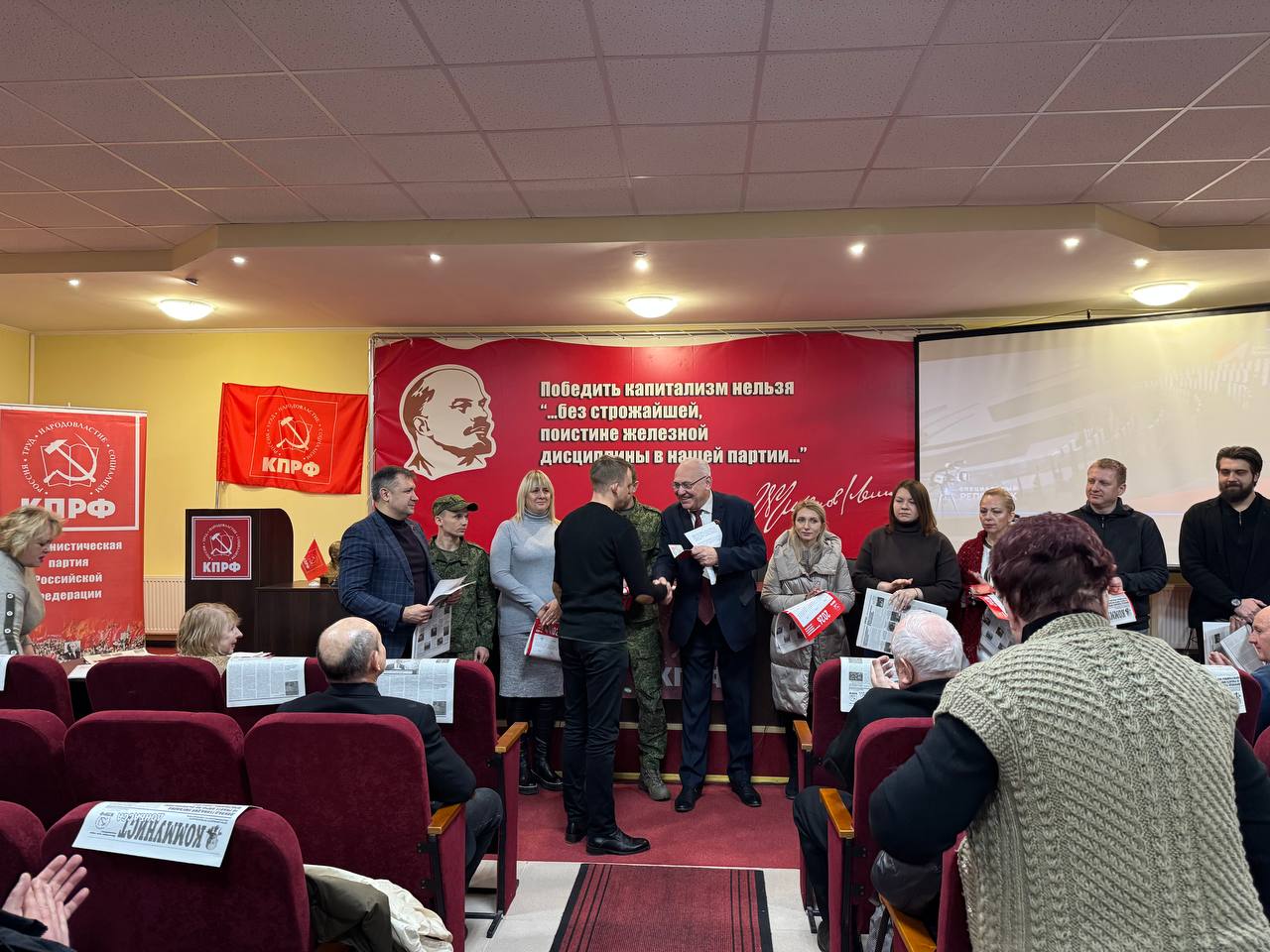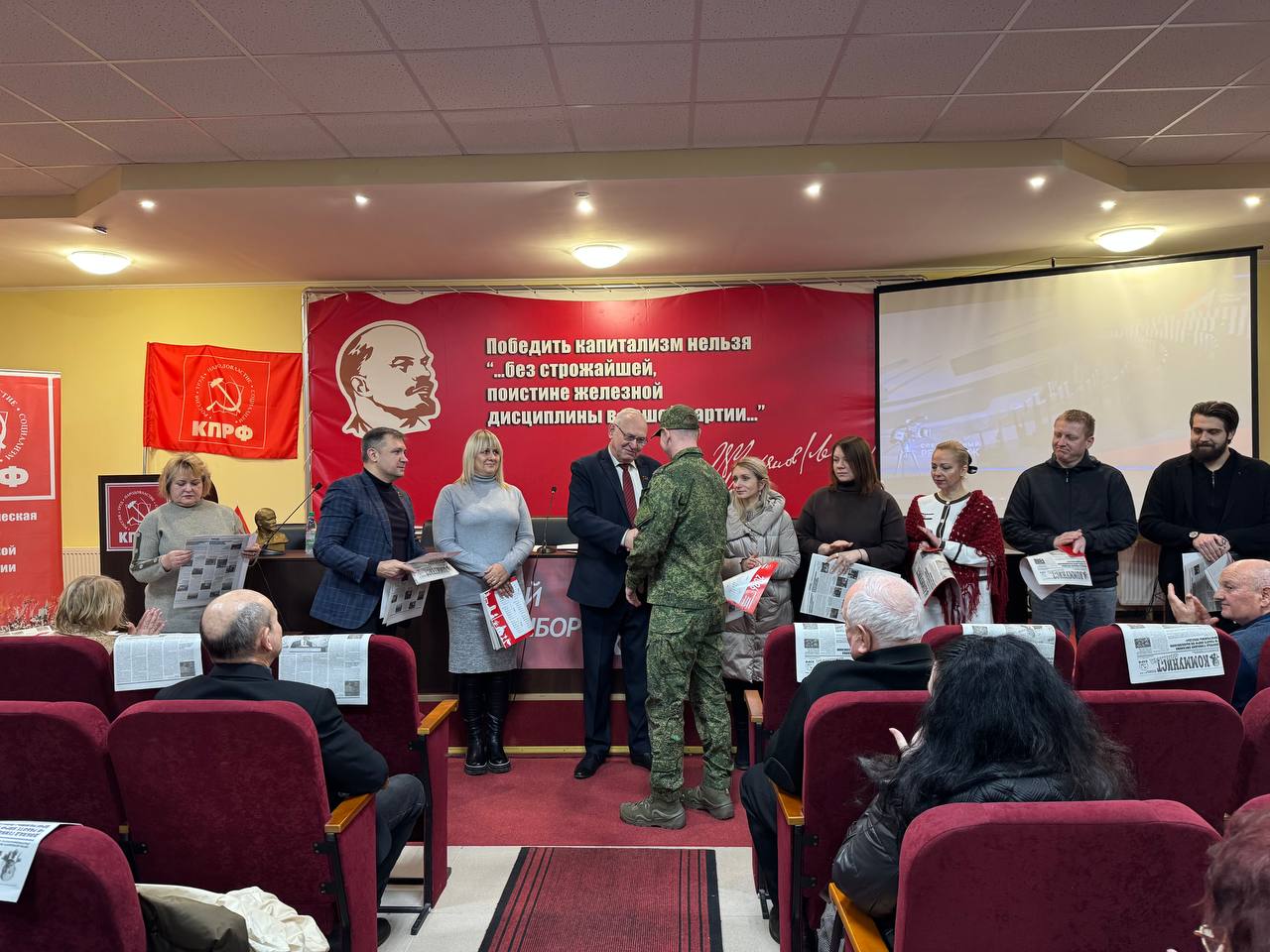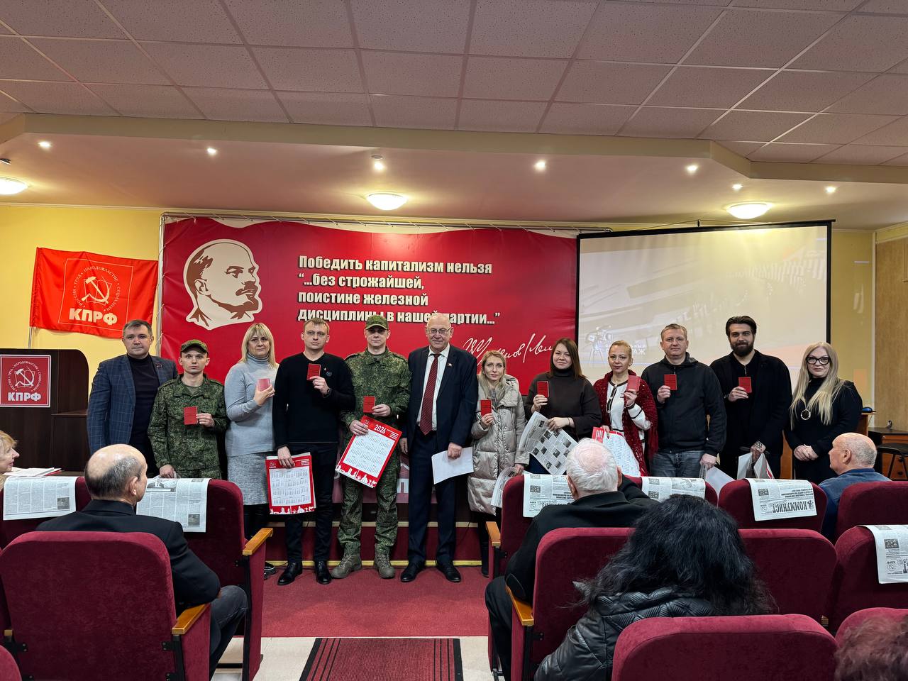 В торжественной обстановке состоялось вручение партийных билетов новым членам КПРФ. Первый секретарь Донецкого рескома КПРФ Борис Литвинов, приветствуя товарищей, акцентировал внимание на особой ответственности и высокой степени доверия, которую предполагает вступление в партийные ряды в текущий период, а также подчеркнул непреходящую актуальность идей коммунизма.