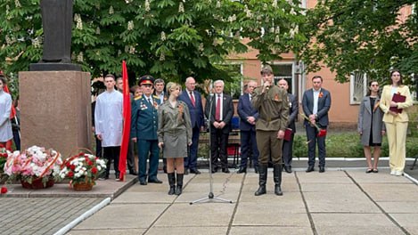В Донецком государственном медицинском университете им. М. Горького у памятника «Воинам-землякам», погибшим в годы Великой Отечественной войны, состоялся митинг, посвященный 80-й годовщине Победы советского народа в Великой Отечественной войне.