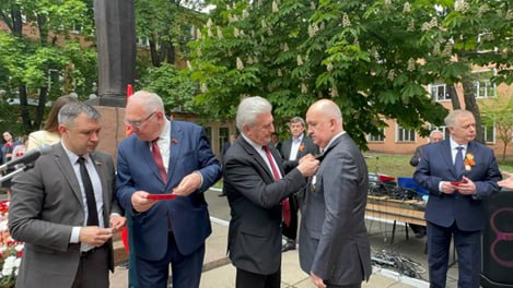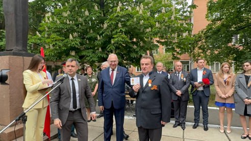 На митинге депутаты-коммунисты провели награждение ветеранов, руководителей и преподавателей университета медалями КПРФ “80 лет Великой Победы», «80 лет Донбасской наступательной операции». Более 40 ветеранам вручены медали «Дети войны». Всем приглашенным ветеранам были вручены продуктовые наборы, организованные КПРФ при поддержке Региональной профсоюзной организации торговли ДНР и первичной партийной организации «Единство», состоящей из работников малого предпринимательства.