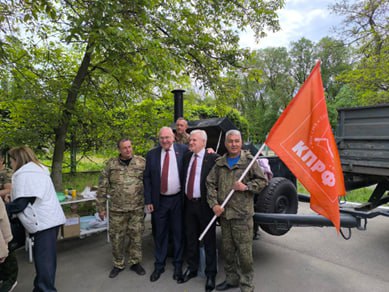 Участие в митинге приняла делегация Донецкого рескома КПРФ в составе Депутатов Фракции КПРФ в Народном Совете ДНР: Бориса Литвинова, Первого секретаря Донецкого рескома КПРФ; Николая Сытова, Заместителя Председателя Народного Совета ДНР, члена Комитета по образованию, культуре и туризму; профессора Игоря Костенка; Депутата Фракции КПРФ в Донецком городском совете, Первого секретаря Донецкого городского комитета КПРФ Сергея Семичасного, секретаря по идеологии Донецкого местного отделения партии Вадима Попкова.
