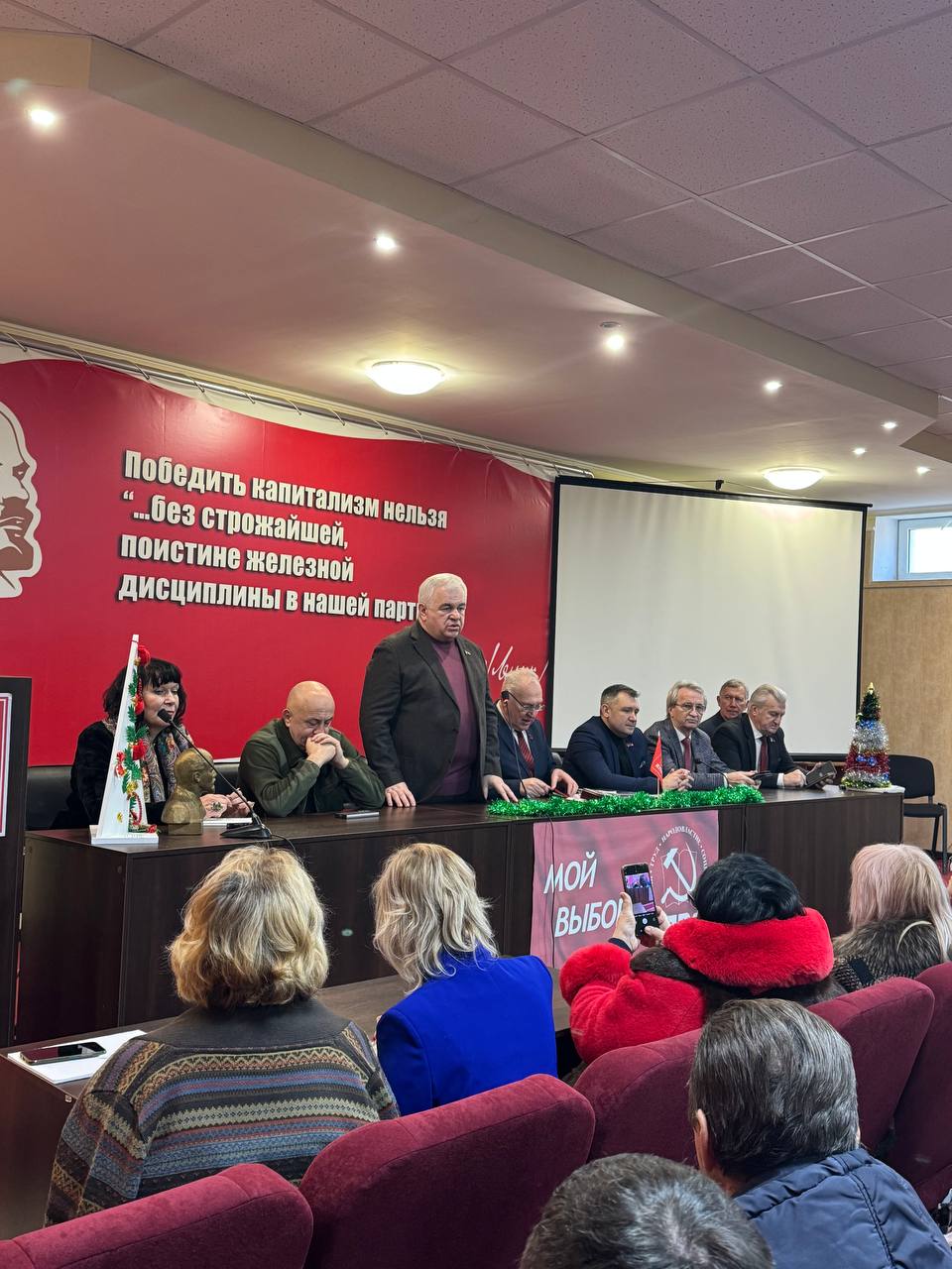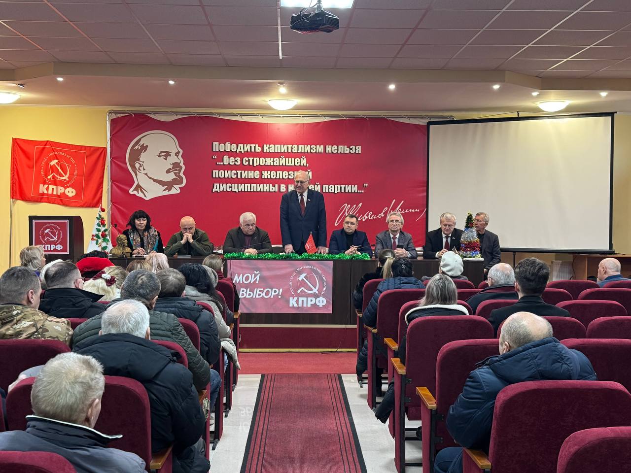 Казбек Куцукович Тайсаев, приветствуя собравшихся, передал поздравления от Председателя ЦК КПРФ Геннадия Андреевича Зюганова и заместителя Председателя ЦК КПРФ Владимира Ивановича Кашина. Он акцентировал внимание на гуманитарной миссии КПРФ, особо отметив необходимость оказания помощи детям и военнослужащим в преддверии новогодних праздников. Казбек Тайсаев призвал партийный актив обеспечить подарками детские дома, детские сады, школы и больницы. Подчеркнув, что КПРФ с 2014 года оказывает всестороннюю помощь населению освобождённых территорий. Также он отметил, что КПРФ выступает за объединение внутри государственных структур для всеобщей победы.