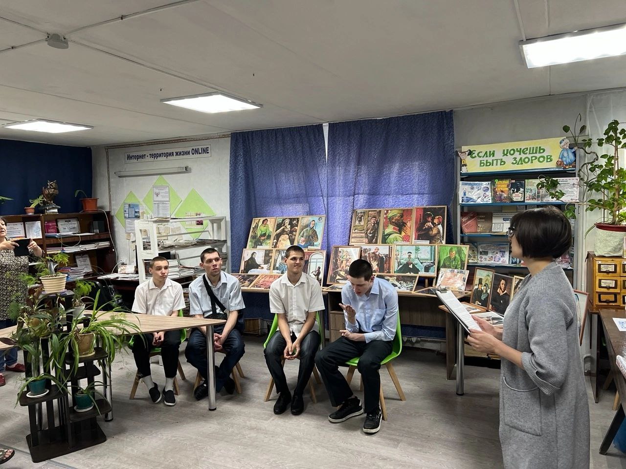 27 июня библиотеку-филиал №3 посетили воспитанники ГБУ «Шахтерский детский дом-интернат для инвалидов с недостатками умственного развития» вместе с воспитателем 4-й группы Саматоевой О. Н. Этот визит стал для ребят с ограниченными возможностями здоровья уникальной возможностью познакомиться с миром книг и журналов, а также узнать о возможностях, которые предоставляет библиотека.