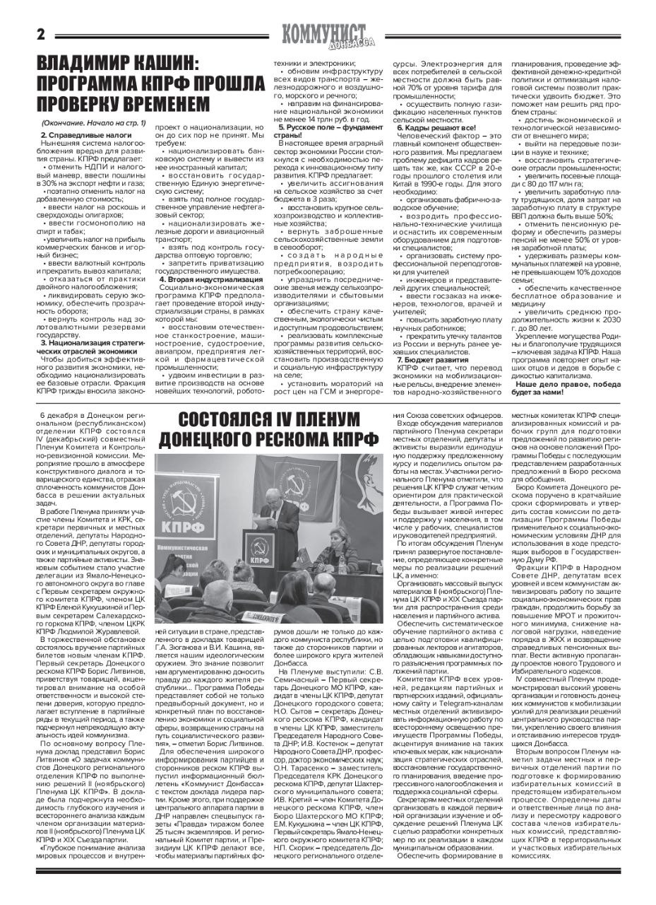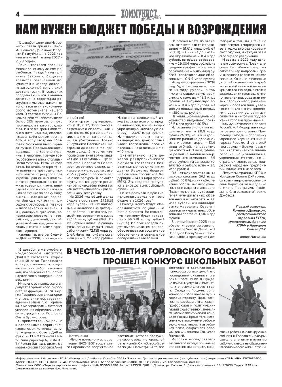 – Аналитическая статья Первого секретаря Донецкого рескома КПРФ Бориса Литвинова, раскрывающая вопросы республиканского бюджета;