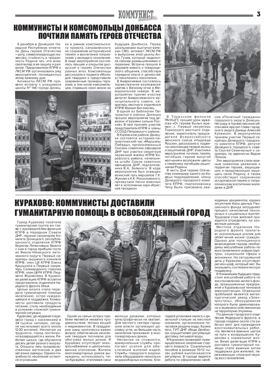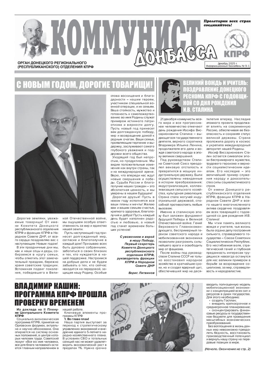 В декабре издан очередной выпуск информационного бюллетеня «Коммунист Донбасса», который продолжает информировать читателей о ключевых событиях и позиции Коммунистической партии Российской Федерации в Донецкой Народной Республике.